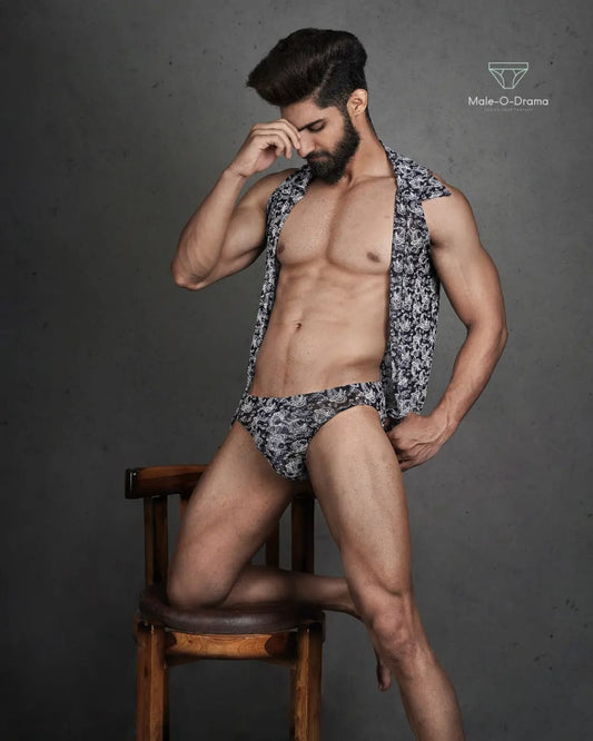 Grey Velvet Lycra Brief with a cape