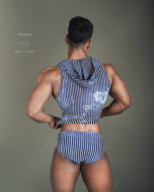 Striped hoodie Coords set with leather applets for closing