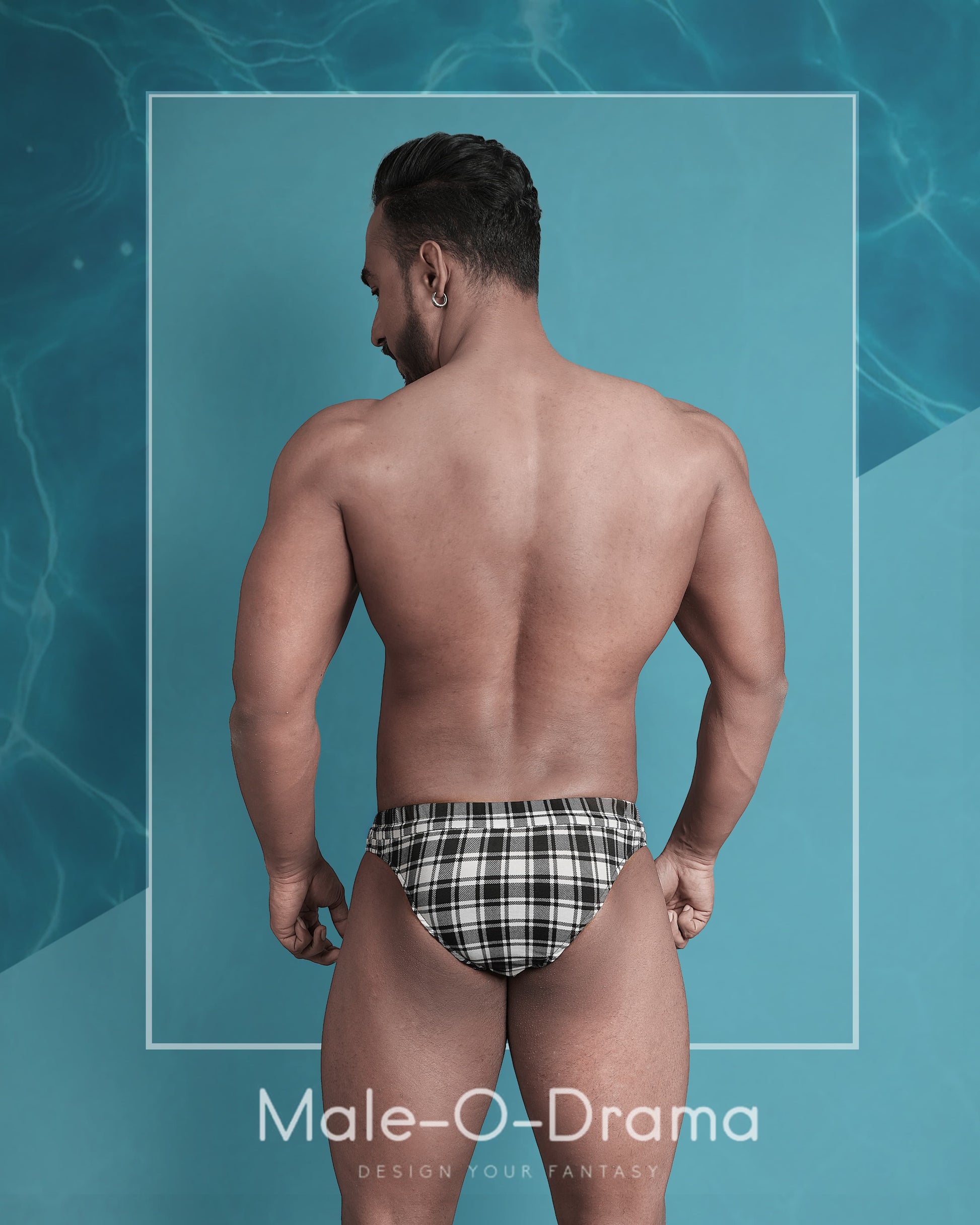 This black and white swimwear brief offers a sleek and comfortable fit with its jersey lycra material and adjustable drawstring waistbelt. The perfect choice for swimming and summer outdoor activities, providing both function and style.