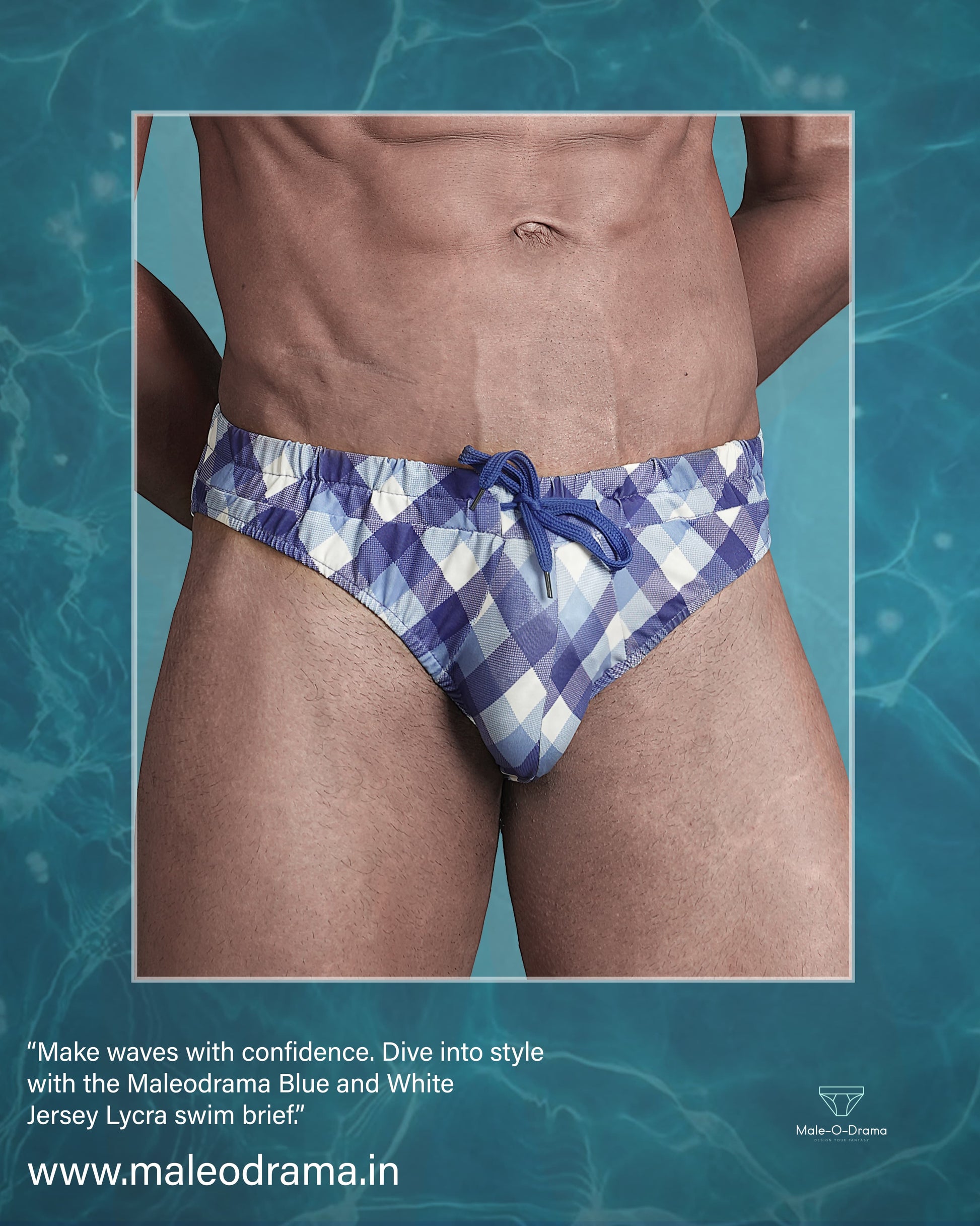 Expertly designed for comfort and performance, our Swimwear brief in blue and white checkered print lycra is the perfect option for all your swimming needs. Made with high-quality jersey lycra and featuring an adjustable drawstring, this brief provides a secure and personalized fit, allowing you to focus on your strokes and enjoy your time in the water.
