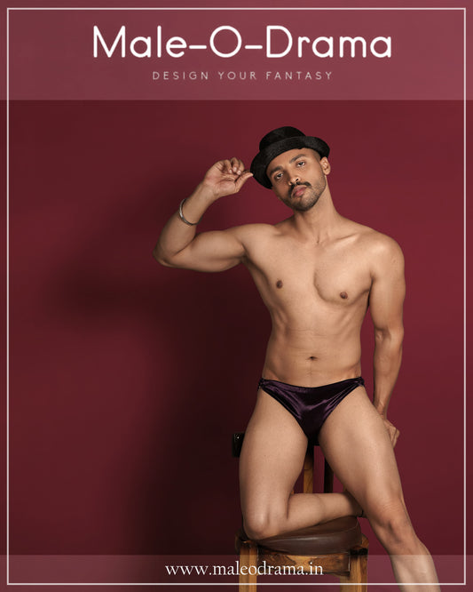 Deep Purple Velvet Lycra Brief with Metal cliff on sides